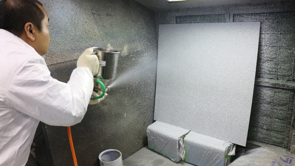 參訪日本水谷塗料公司,廠區主管親自指導塗料使用方式後,由台邦施工團隊實際操作演練。